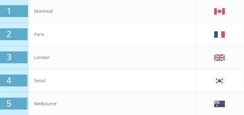 2017 QS最佳大學(xué)城市排名發(fā)布,加拿大蒙特利爾從去年的第七位升至第一,終結(jié)巴黎的五連冠。巴黎掉至第二位,主要是因?yàn)樵谥Ц赌芰拖蛲葍煞矫娴梅窒陆怠惗赜扇ツ甑牡谖迕仙恋谌ツ甑谑氖谞柹恋谒模珷柋緞t由去年的第二跌至第五。中國最好成績是排在第11位的香港,上海和北京分列第25和30名。(美通社,2017年2月15日倫敦)