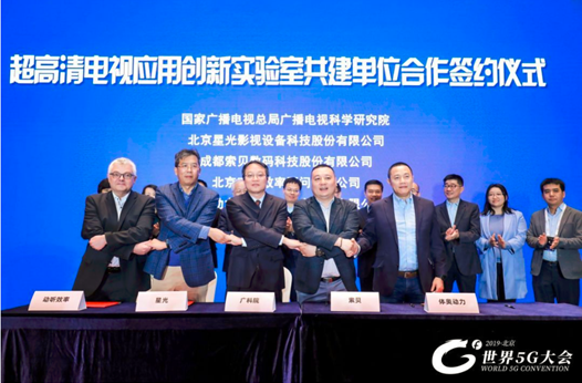 2019年11月22日上午,在世界5G大會“5G+超高清視頻高峰論壇”現場,國家廣播電視總局廣播電視科學研究院、北京市廣播電視局作為牽頭單位,分別與中國傳媒大學、北京體育大學、新奧特(北京)視頻技術有限公司、北京中科大洋科技發展股份有限公司、上海海思技術有限公司、北京星光影視設備科技股份有限公司、成都索貝數碼科技股份有限公司、北京動聽效率顧問有限公司、體奧動力(北京)體育傳播有限公司簽署了“超高清電視應用創新實驗室”共建協議。